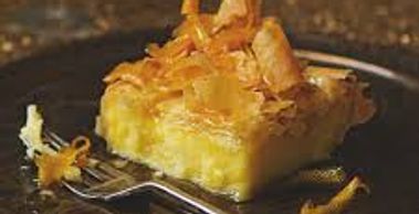 This is Greece’s answer to Vanilla Slice and is a classic at every Greek celebration. Filo pastry gently envelopes a tray of soft milk custard filling, drizzled in a delectable syrup